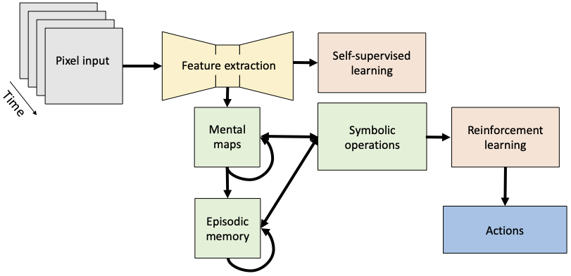 我的研究旨在推进我们的理解认知的计算基础通过知觉神经层次模型的开发,内存,和学习。我们测试模型的数据行为实验和电生理记录和使用它们来构建人工代理,可以学习一种无监督的方式从时间和空间规律在现实世界中。具体来说,应用领域包括强化学习、空间导航、自然语言处理和计算机视觉。