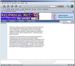 现在所有的数据位于IUMSC互惠网络服务器。这个服务器是网络实验室系统的一部分位于晶体学实验室在美国。每个服务器系统中既有“公共数据和数据尚未获得释放。一般来说,公共数据包括结构性数据出现在化合物的科学文献或数据研究者不打算发布和已同意向公众发布。化合物的数据尚未向公众发布只能访问通过输入一个有效的用户名/密码。当你去IUMSC互惠网络页面,你会发现下面打开页面: 用户可用的选项在菜单栏列出。“家”是当前页面;“搜索”允许用户使用公式定位结构,细胞参数,和其他数据;“浏览”,您可以查看所有可用的结构;和其他网站将其他服务器列表倒数网的一部分。盒子包含“去样品#”和“去”按钮在右边距允许用户输入数量和结构直接结构问题(对于后者必须分配给你的样本的数量IUMSC时提交)。请注意,只有结构,您将能够访问在这一点上是那些已经向公众发布。 如果你想访问你的数据尚未向公众发布(基本上所有最近的结构),点击“登录”链接位于下的下一行 下面的对话框将提示您为您分配的用户名和密码: 进入您的分配的用户名和密码后,单击“登录”按钮,和你应该返回到前一页您的用户名中输入的任务栏: 通过登录,你都将有机会获得所有公开可用的数据以及非公开数据,您已获得访问视图。 这个时候您可以输入样本数量在“去样品#”框,然后单击“走”来找到你的数据,或者如果你不知道分配的数量,你可以点击“搜索”键打开数据库搜索表单如下: 另一个选择是“浏览”数据库通过单击“浏览”按钮。请注意,有大量的结构可用,所以这个选项不是非常有用。进入“Fe6”经验公式字段在上面的形式输出如下所示: 列出的每个结构可以通过点击链接访问样本识别。 参见: |