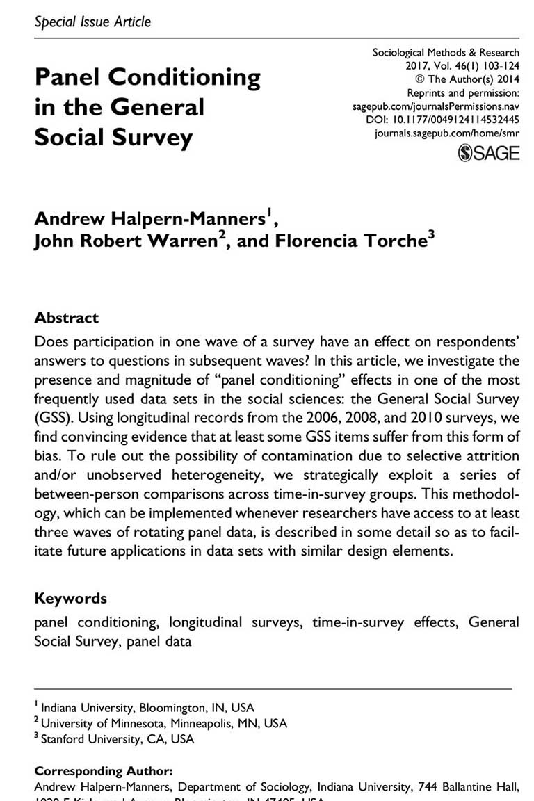 系的副教授Andrew Halpern-Manners是社会学。他收到了明尼苏达大学社会学博士学位,以及一个MPP政策分析。他目前的项目包括两大河流的研究:一个检查分层教育的影响,内部和两代人之间,另一个研究小组的患病率和后果条件(或“time-in-survey”效应)在纵向社会科学调查。感兴趣的特定主题包括的因果影响教育健康和长寿;在社交网络交叉教育的影响;在调查研究和方法对于识别面板调节。出现在他最近出版的工作美国社会学、杂志人口、社会力量,社会学方法和研究。
