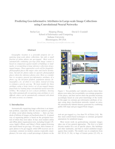地理位置是一个强大的财产组织大规模的图片集,但只有一小部分在线照片地理标记。大多数工作在自动从图像内容是基于估计行程比较对模型的建筑物或地标,或者匹配大参考标记图像的集合。这些方法适合经常拍摄主要城市和旅游目的地,但失败的照片很少拍照一些参考照片存在的地方。这里我们考虑如何识别一般geo-informative照片的属性,例如海拔梯度、人口密度、人口、等的拍摄,而不是试图估计一个准确的定位。我们学习这些属性模型使用一套大型(噪声)的地理图像从Flickr通过训练深卷积神经网络(cnn)。我们在十几个属性,评估显示,自动识别一些属性是非常困难的,别人可以自动估计有人类一样的准确性。