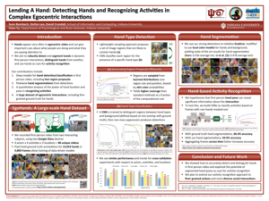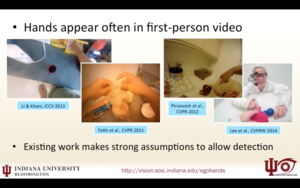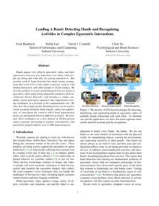我们提出一个CNN-based技术检测,识别,分割的手在自我中心的视频,包括多个相互作用的人。为了说明一个特定的应用程序中,我们表明,手段仅可用于识别准确的活动。